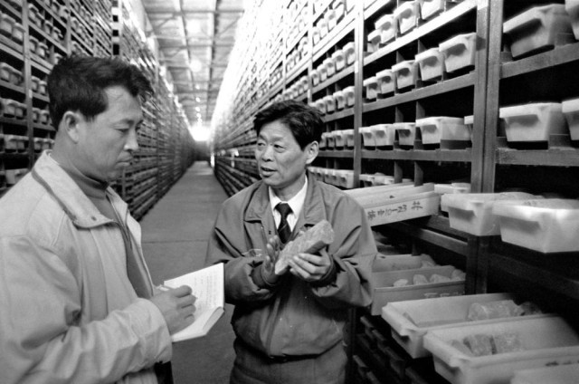 1997年,王启民(右)带领科研人员大胆探索研究开采低渗透层和薄层的方案。