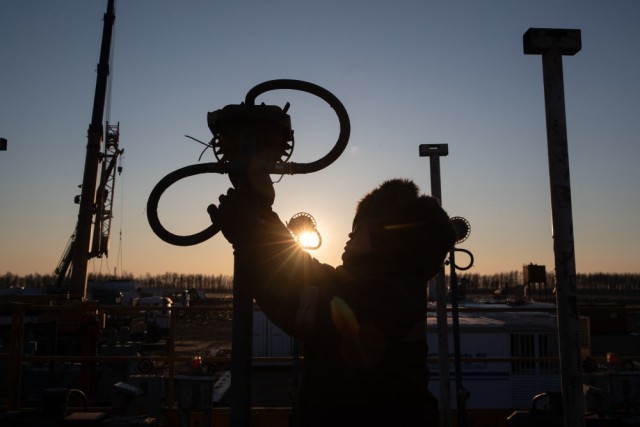 2020年12月28日,1205钻井队钻井工人在野外钻井平台作业。