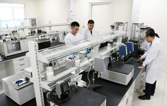 2019年6月26日,在大庆油田勘探开发研究院,科研人员在进行聚合物驱油实验。