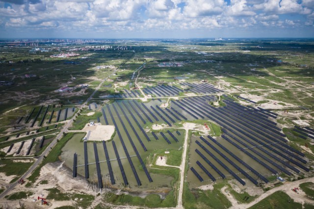 2022年7月21日拍摄的大庆油田星火水面光伏项目。