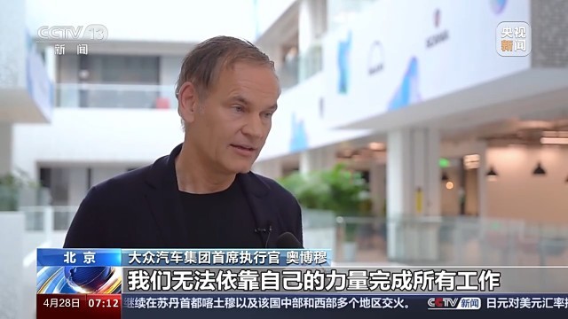 大众汽车集团首席执行官 奥博穆:中国的新技术发展迅猛,我们希望参与其中,并使之赋能我们的发展。我们无法依靠自己的力量完成所有工作,也不想单兵作战。