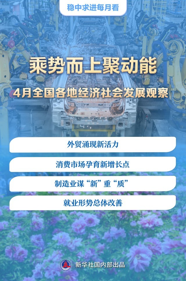 春意盎然育生机。一季度经济数据出炉释放积极信号,消费市场亮点纷呈,经济社会发展对就业的带动效应逐步显现……今年4月,全国各地真抓实干,乘势而上,进一步巩固和增强经济回升向好态势。