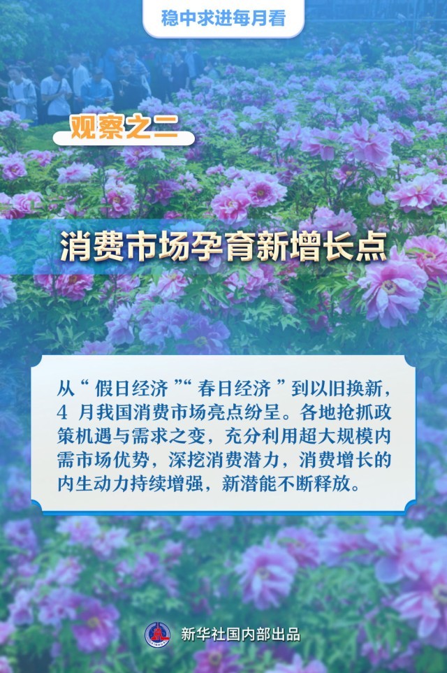 【记者观察】从“假日经济”“春日经济”到以旧换新,4月我国消费市场亮点纷呈。各地抢抓政策机遇与需求之变,充分利用超大规模内需市场优势,深挖消费潜力,消费增长的内生动力持续增强,新潜能不断释放。