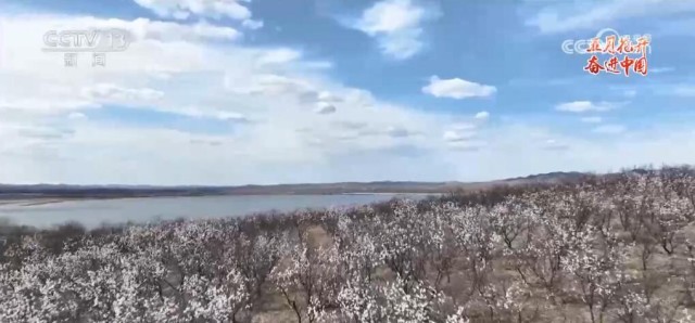 现在我们看到的是吉林洮南市的百万亩杏花。山间、田野、湖边,远远望去,一片片杏花白的似雪、粉的如霞,在微风吹拂下摇曳生姿,散发出淡淡幽香,吸引了众多游客和摄影爱好者前来赏花、拍照。近年来,洮南市统筹利用文化和旅游资源,发展乡村特色文旅产业,助推当地经济发展。