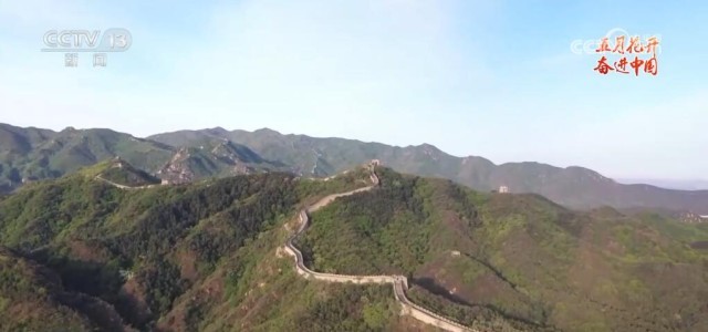 您现在看到的是位于北京市延庆区的八达岭长城。天空湛蓝,金色的阳光越过山顶,长城好似身披“金甲”,于静谧之中尽显雄奇壮美。蜿蜒的长城盘踞在山脊之上,漫山遍野生机盎然,草木葱茏。游人们登至高处,将长城的壮观与烂漫的春日盛景尽收眼底。