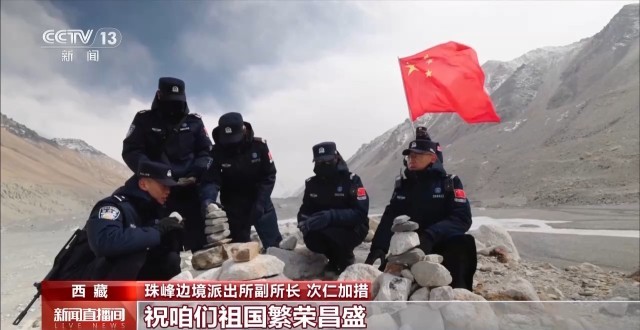 珠峰边境派出所副所长 次仁加措:我们每次到这个地方,有一个仪式,就是把石头垒在这里,表达我们的祝福。祝祖国繁荣昌盛,也祝我们心想事成。
