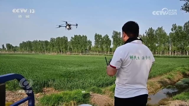 华成祥在岗位上刻苦磨练技艺,为翱翔于高空的大飞机而奉献,还有的年轻人在以自己所学,为大地上的千亩农田绘就新画卷。这些天正值小麦生长的关键期,在河北邯郸曲周县一片农田上空,无人机正忙着施肥。