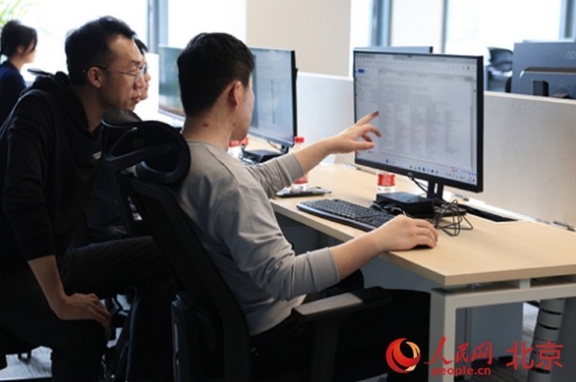 在北京人工智能数据训练基地,大模型数据供给方、加工服务方、模型训练方在这里携手合作,共同实现模型的训练精调。人民网 李世奇摄