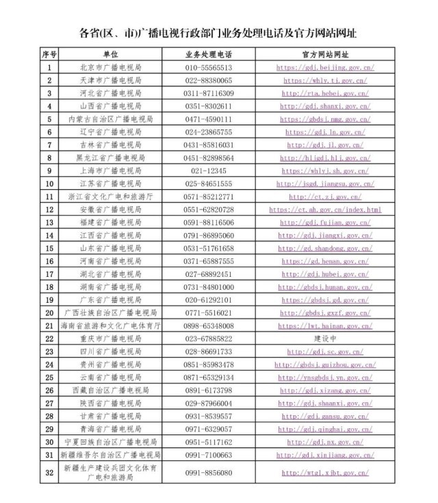 1.所在省(区、市)广播电视行政部门业务处理电话,以及官方网站等线上渠道;