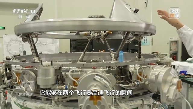 航天科技八院149厂对接机构总装组组长 王曙群:神舟飞船用的对接机构能够在两个飞行器高速飞行的瞬间,实现两个飞行器柔性连接,在两个飞行器之间建立一个刚性的气密通道,宇航员可以不穿宇航服在两个不同的舱段里工作和生活。