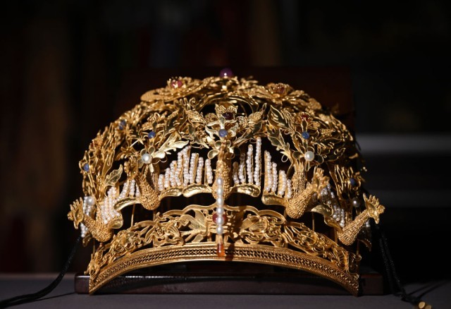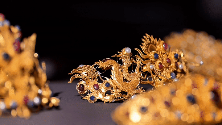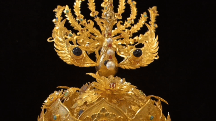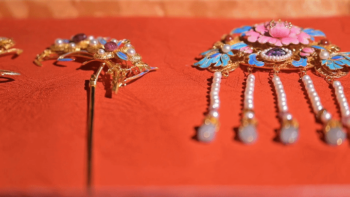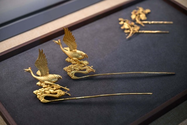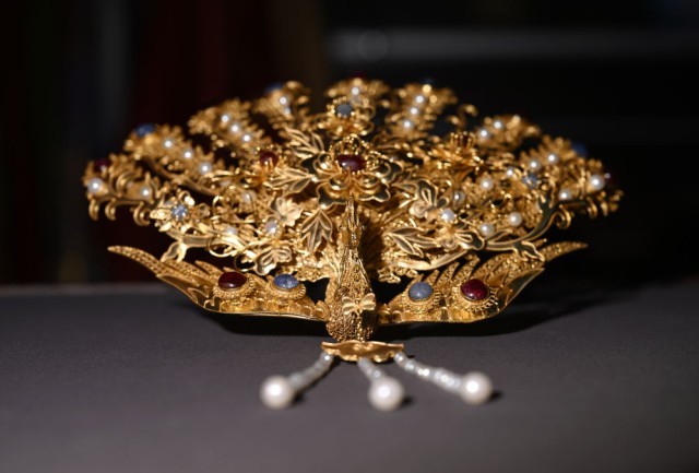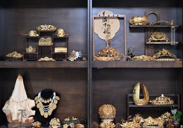 这是3月23日在天津市武清区博物馆拍摄的花丝镶嵌展览品。新华社记者 孙凡越摄