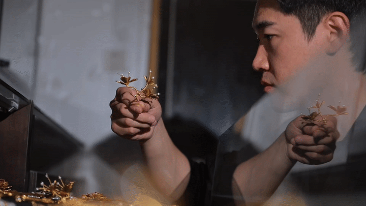 技艺制作的头饰(3月7日摄)。新华社记者 孙凡越 摄