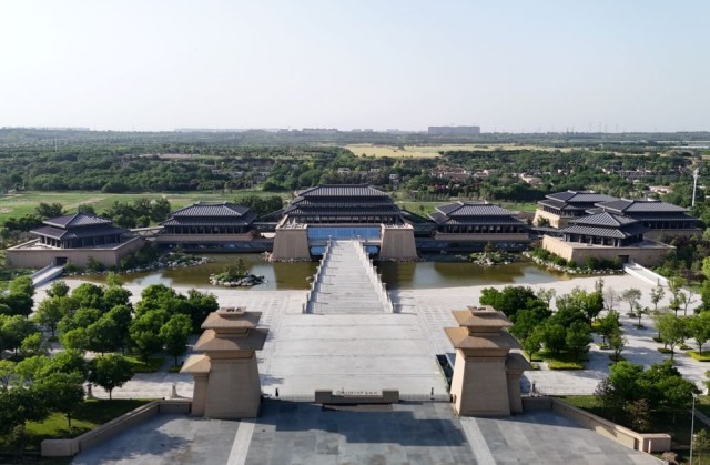 不远处,以“高台榭、美宫室”的秦汉宫殿建筑为外形的陕历博秦汉馆拔地而起。主馆区七座建筑如北斗七星布局,彼此以廊道相连。从空中俯瞰,古老遗址与现代场馆交相辉映,引人注目。