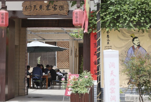 2024年4月23日,食客在秦汉新城刘家沟村农家乐就餐。新华社记者 李一博 摄