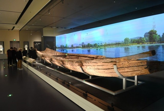 展馆核心地带,出土自汉长安城北渭桥遗址的古船“丝路一号”历经风雨,接受访客的惊叹。