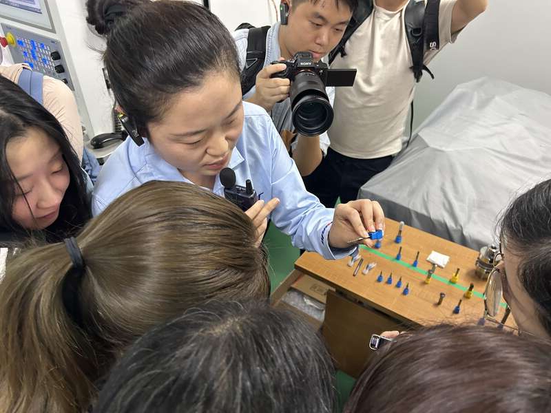 5月16日,广东省佛山市广东原点智能技术有限公司工厂内,工作人员正在为参观者展示由公司生产的数控机床产品加工得到的零部件。中青报·中青网见习记者 贾骥业/摄