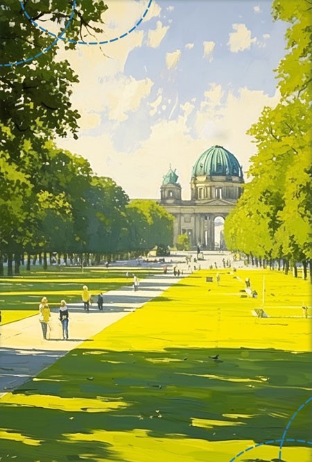 根据《朱自清散文经典》中描述的巴黎、温州的踪迹、扬州的夏日、瑞士、柏林、南京依次生成的AI图片。整理/李怡蒙 AI图片生成/程璨
