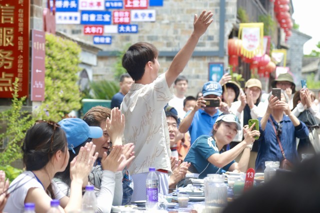 在这里,学生们参与了前童第十五届豆腐文化节,不仅品尝了当地的霞客饼和霞客豆腐长桌宴,还深入了解古镇文化,体验传统技艺。在长桌宴上,当来自四川音乐学院的学生代表高连辉唱起《我爱你,中国》,在场大学生们随声唱和,融入其中。