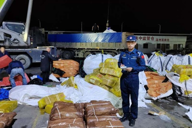 2024年5月8日,温州海警突击查获走私冻品100余吨。中国海警局供图
