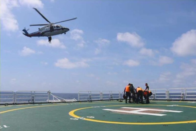 2023年3月16日,海警万山舰海空接力成功救助2名受伤群众。中国海警局供图