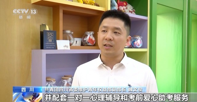 共青团四川省委维护青年权益部副部长 魏文俊:开通了专门服务热线,推出了心理健康减压课,并配套1对1心理辅导和考前爱心助考服务,帮助同学们调整心态,自信面对考试,为同学们健康成长保驾护航。