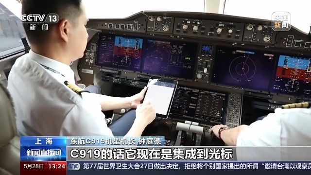 东航C919机型机长 钟庭德:以前像320或者330的飞机,它大部分是以按键为主要去进行输入的一个方式,C919它现在是集成到光标加一个按键的方式,就有点很类似于我们现在电脑的操作方式了。每个页面能容纳我们输入的量数据量是非常大的,从一个页面就可以把很多事情给完成了。