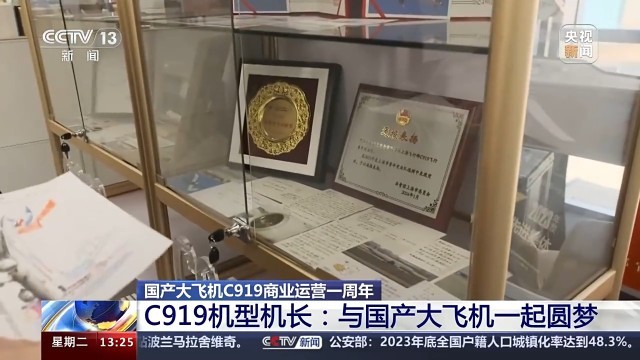 在东航C919飞行部的荣誉橱窗里,记者注意到,里面摆放着飞行部获得的各种荣誉。但是钟庭德并没有给记者介绍这些荣誉来,而是小心翼翼地拿出了一张手绘的彩笔画。画面的主体正是全球首架交付的C919飞机。钟庭德告诉记者,这是在一次飞行时,一位来自贵阳的小乘客特意嘱咐乘务长转送给机组的礼物。