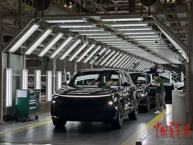 5月31日,正在下线的理想新能源汽车L6。 中青报·中青网记者 石佳/摄