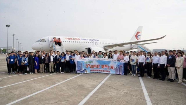 此前,沪港青年会曾组织百余名香港大学生来到上海,赴中国商飞参观了国产大飞机的总装线。2023年12月,C919飞机首次抵达香港,在低空飞行中展示国产大飞机的英姿。