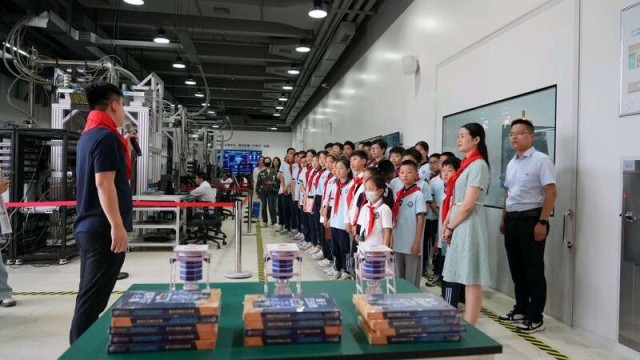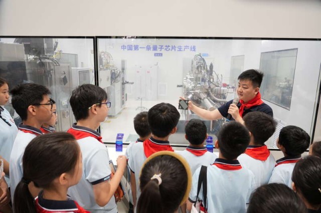 “中国自主量子计算机群开放授课活动”现场,少先队员们进行参观。孙超/摄。