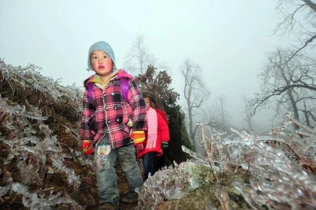 广西桂林市全州县蕉江瑶族乡大源村位于桂北高寒山区。每年隆冬时节,孩子们都要在老师和家长的护送下,在一片冰天雪地中踏上求学之路。