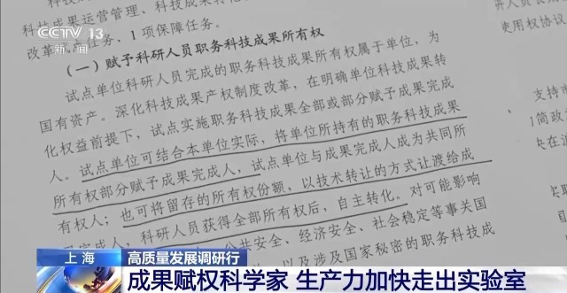 改变来自在上海推行的一系列科技成果转化新举措。其中关键一项,就是在明确转化科技成果收益比例等单位权益的前提下,允许科研人员享有科技成果的全部所有权,帮助科研人员将成果投入创业公司,吸引社会资本,更好进行成果转化。
