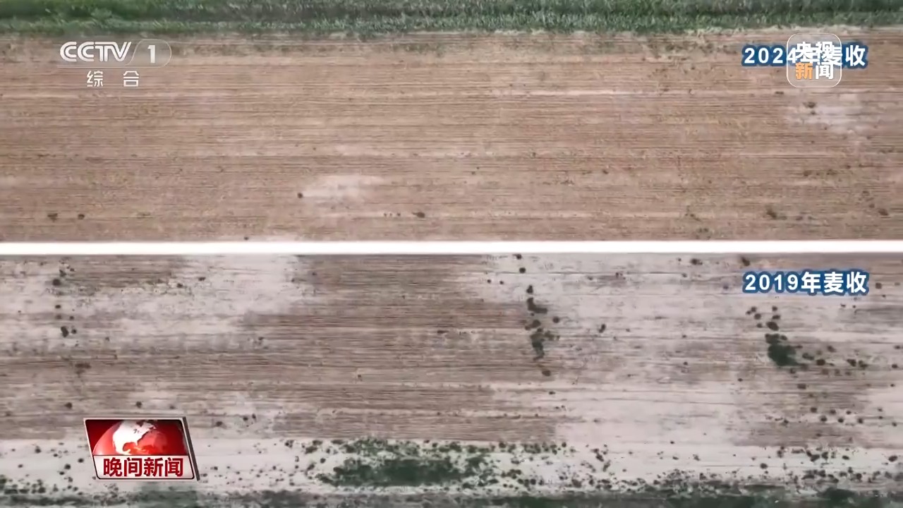 总台央视记者 陈博:这里是河北省黄骅市的李子札村,在盐碱程度高的麦地里,像这样斑秃越少,就代表着盐碱地治理的效果越好。通过对比,我们发现今年这里的斑秃,减少了不少。每亩旱碱麦的产量也比五年前增加了100斤以上。
