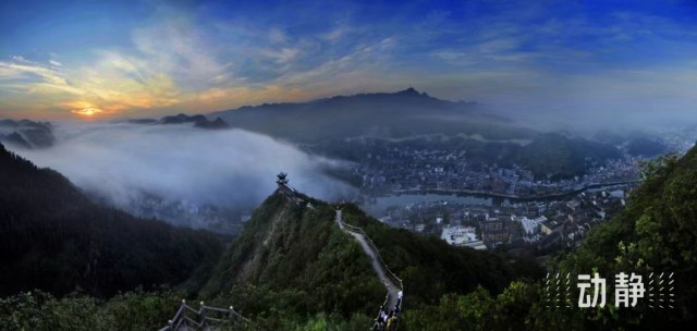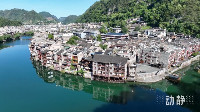 中国历史文化名城贵州镇远, 阳河自西向东贯通全城,形成“九山抱一水,一水分两城”的独特古城风貌。