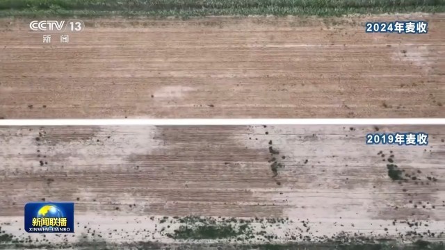 总台央视记者 陈博:这里是河北省黄骅市的李子札村,在盐碱程度高的麦地里,像这样斑秃越少,就代表着盐碱地治理的效果越好。通过对比,我们发现今年这里的斑秃数量,减少了不少,每亩旱碱麦的产量也比五年前增加了100斤以上。