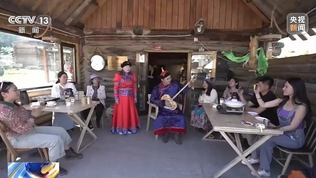在村子里逛累了,您可以走进一些有当地传统歌舞表演的民宿中,喝一碗奶茶,品尝特色美食,听一听图瓦人表演的呼麦。伴随着冬不拉的弹奏,看一场热情奔放的“黑走马”表演,近距离感受当地文化。