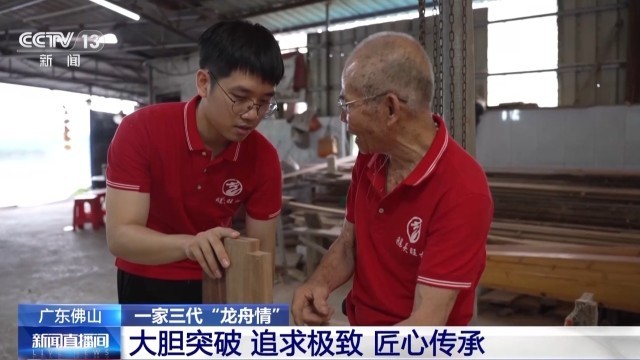 1995年出生的李锦标是第三代龙舟制作人。此时,他的爷爷、父亲、叔叔正在忙着组装船体,技艺十分娴熟,李锦标在细心地向他们请教。
