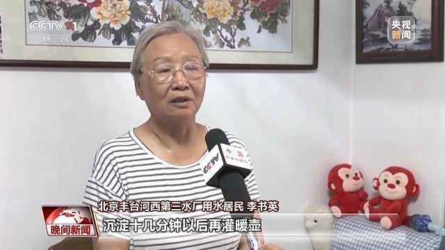 北京丰台河西第三水厂用水居民 李书英:我们原来用水壶烧开水以后,还得沉淀,沉淀十几分钟以后再灌暖壶,但是暖壶里水碱也特别多。现在通过南水北调水质比之前好多了,水碱比原来大大减少。