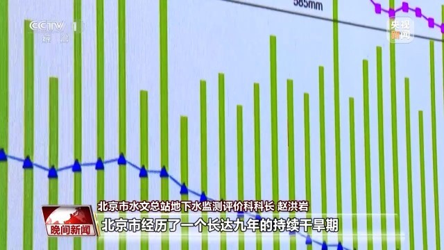 北京市水文总站地下水监测评价科科长 赵洪岩:从1999年到2007年,北京市经历了一个长达九年的持续干旱期。这期间,北京市地下水水位呈一个逐年下降的态势。南水北调水进京以后,我们加大了地下水的压采力度,适时进行生态补水,让地下水得到了比较大的涵养。特别是从2015年以后,地下水埋深从25.75米,已经回升到了2023年的14.74米。