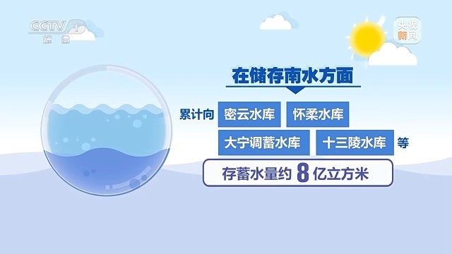 在储存南水方面,北京市利用南水北调配套密云水库调蓄工程反向输水,累计向密云水库、怀柔水库、大宁调蓄水库、十三陵水库等存蓄水量约8亿立方米。另一方面,北京还对有条件的地下水源地开展了试验性补水,水位回升明显。