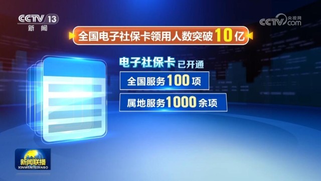 全国电子社保卡领用人数突破10亿。电子社保卡已开通全国服务100项,属地服务1000余项。