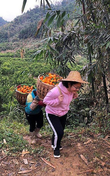 黄文秀与村民一起采摘运输砂糖橘(资料照片)。新华社发