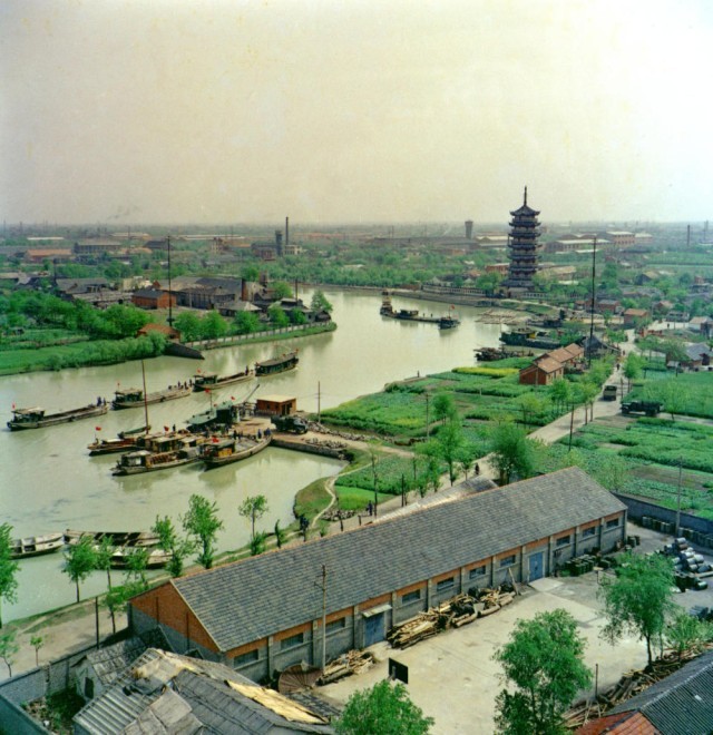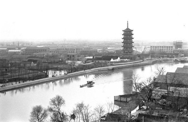 1980年在江苏扬州拍摄的古运河和文峰塔。