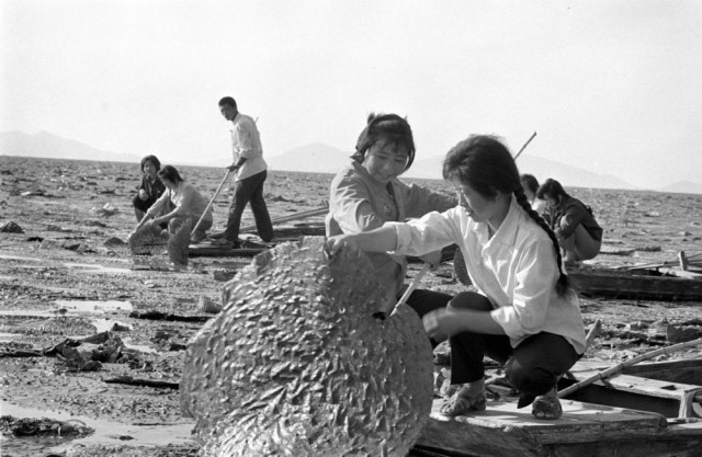1980年,山东东平湖的渔民们在采摘鸡头米。?