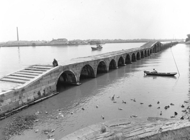 1986年拍摄的江苏苏州大运河石拱古桥——宝带桥。