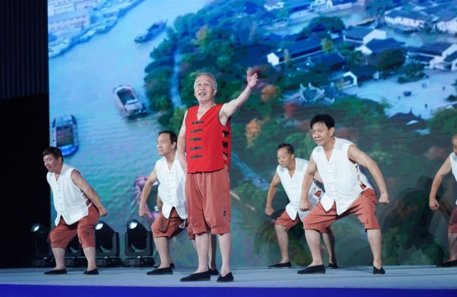 2022年8月8日,演员在2022北京(国际)运河文化节开幕式表演节目《运河船工号子》。