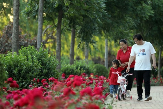 2022年5月25日,市民在河北沧州吴桥县运河公园休闲游玩。