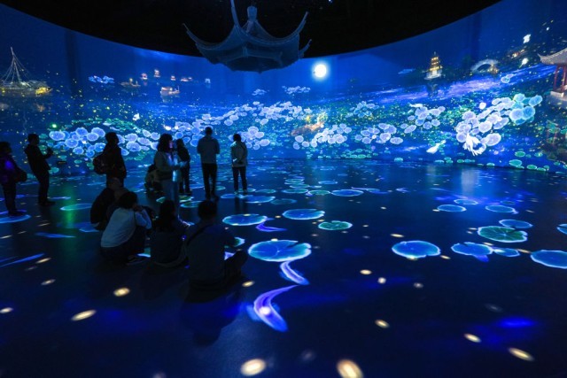 2024年4月23日,游客在江苏扬州中国大运河博物馆参观游览。