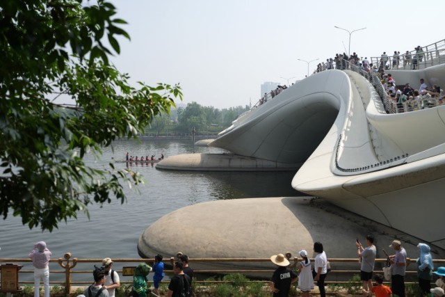 2024年6月10日,市民在北京城市副中心京杭大运河岸边观看赛龙舟。