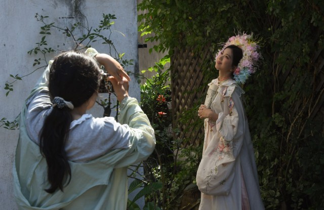 2024年6月12日,游客在浙江杭州小河直街历史文化街区留影。